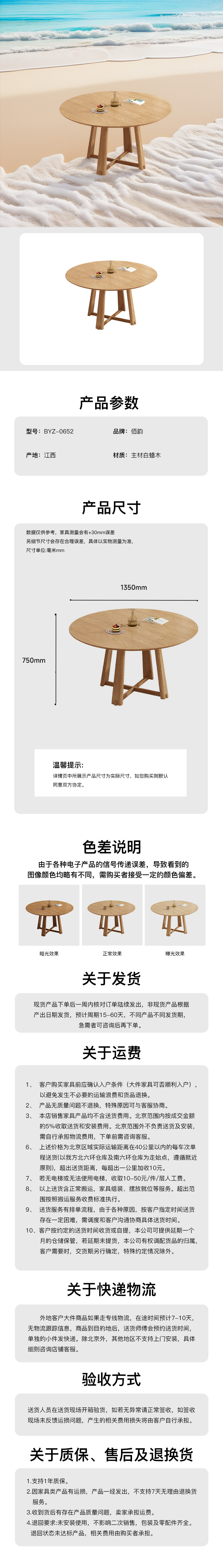 圆餐桌(1.35米-暖杏色)主材白蜡木 BYZ-0652