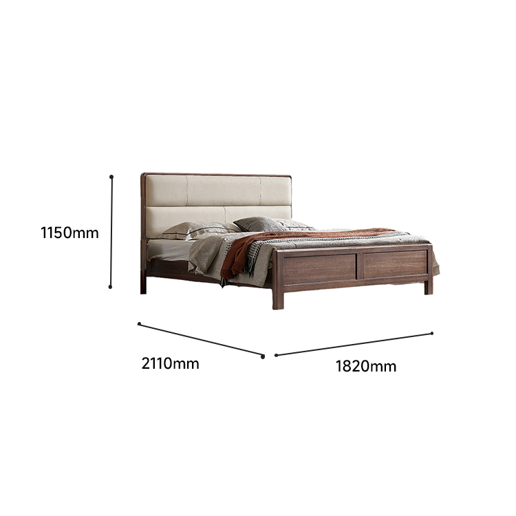 半暖实木软包床主材红榄仁木 BYC-0874