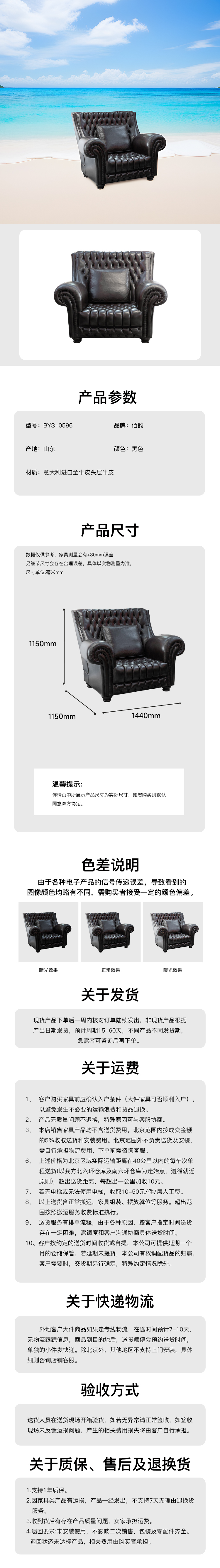 全皮单人位沙发意大利进口全牛皮头层牛皮 BYS-0596