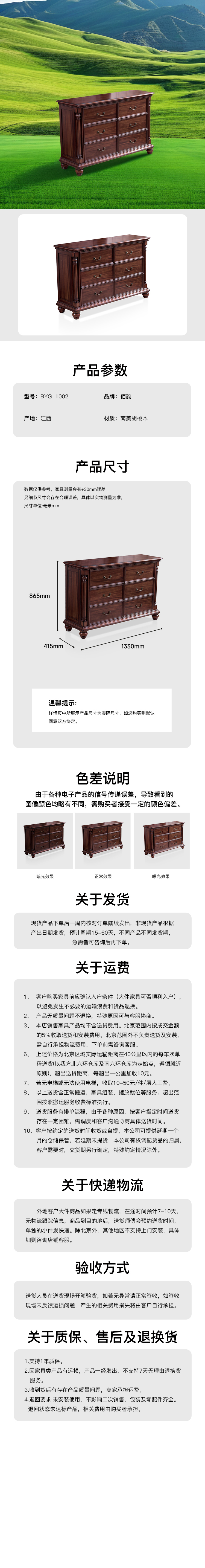 六斗柜南美胡桃木 BYG-1002